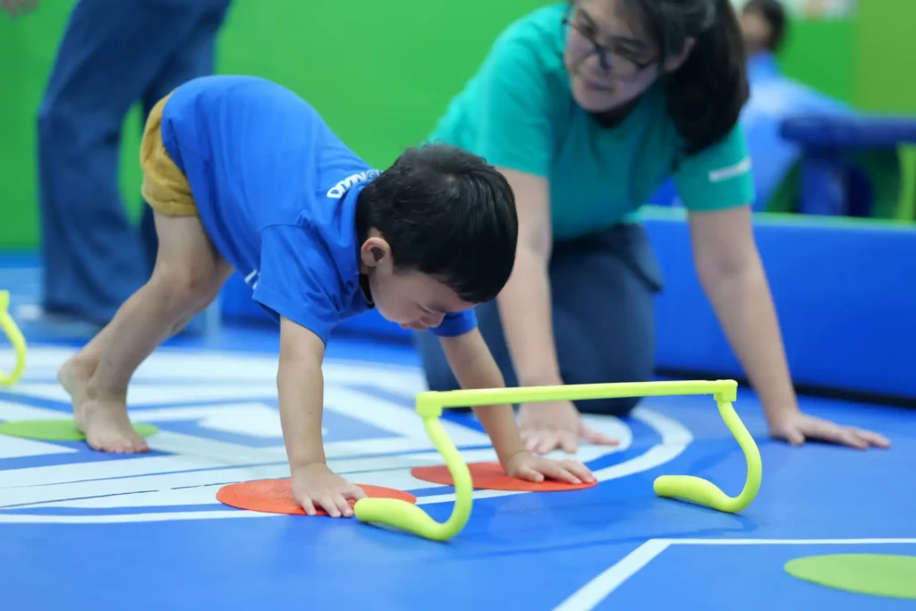 Each session includes fun, structured activities and obstacle courses for crawling, climbing, running, balancing, and lifting. We keep things fast-paced and varied to keep kids engaged, while always focusing on age-appropriate skills that support physical and social development with your help every step of the way